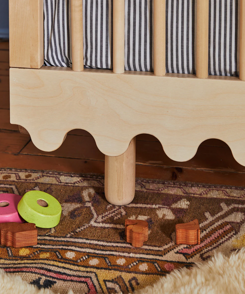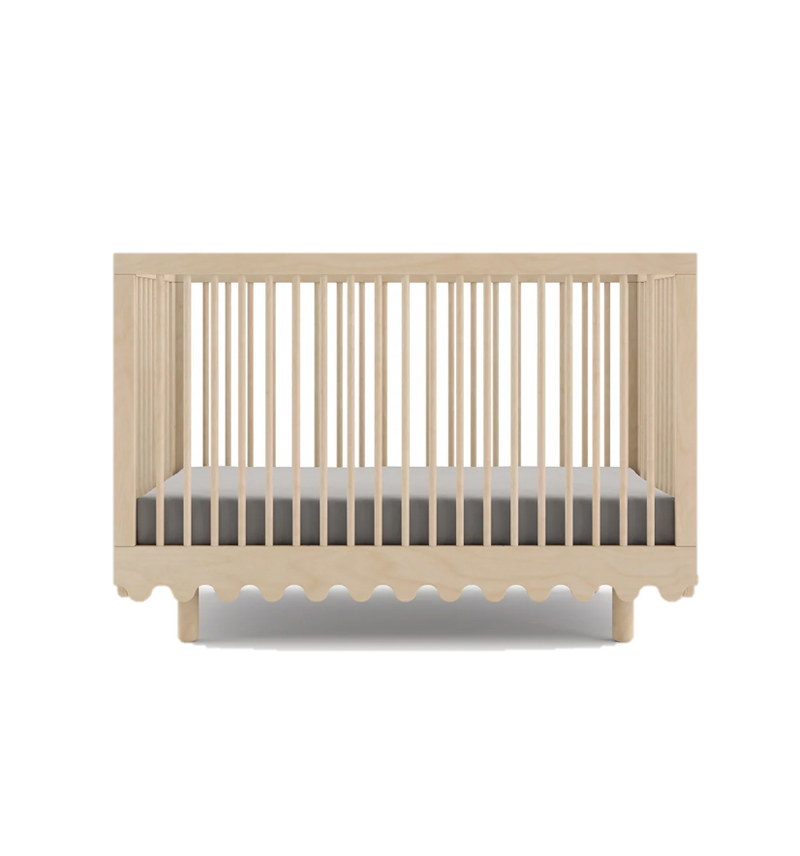 An ode to playfulness in furniture form. The Moss Crib features a bold yet simple wave motif that’s an instant statement in any nursery, whether minimalist or maximalist. All four sides of the crib feature open & airy round spindles. Additionally, this crib has been produced in Europe under European environmental standards, using finishes that are non-toxic, water-based and free of VOC health hazards. Bonus: When your child has outgrown their crib stage, easily convert the Moss Crib into a toddler bed with the Moss Toddler Bed Conversion Kit (sold separately).