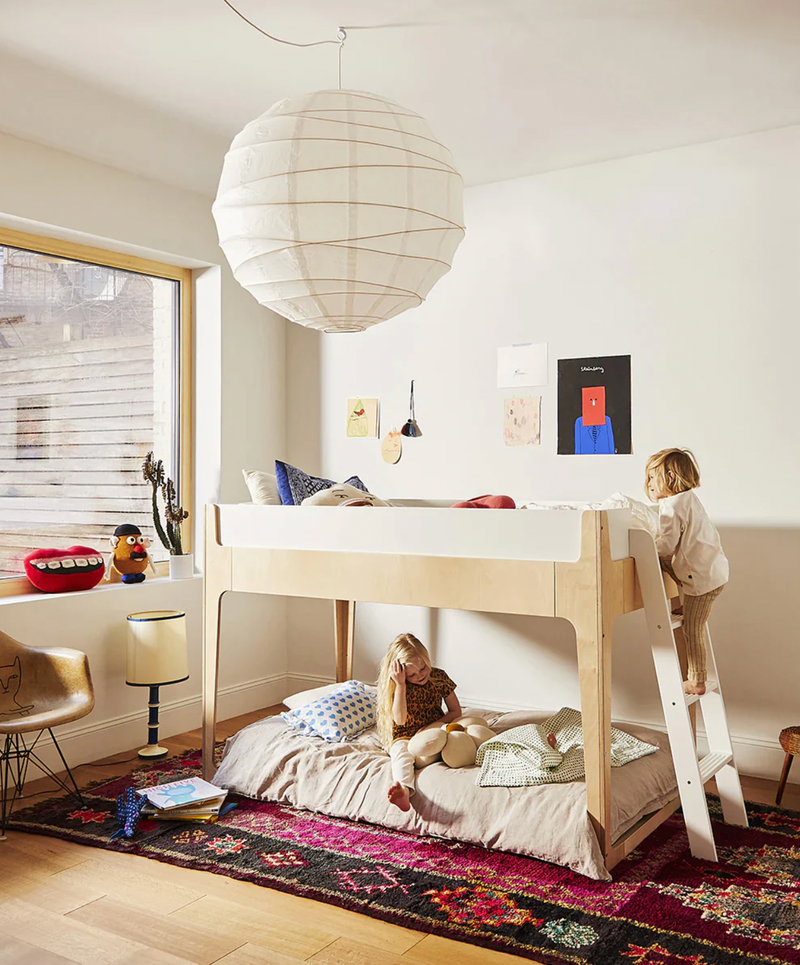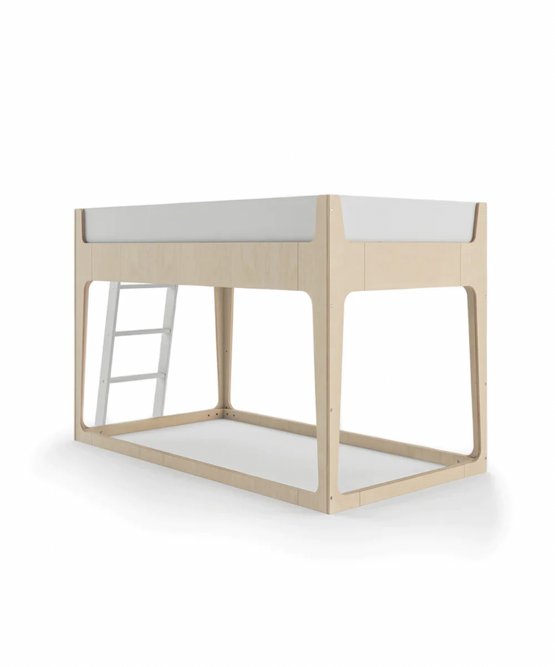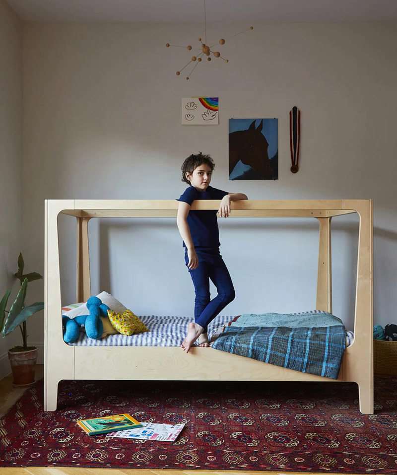 As a loft bed with a ladder, children ages 6+ can sleep on the top bunk, with either a play space or a floor-level mattress below, and as a canopy bed, it’s perfectly cozy and can fit an optional add-on trundle bed below. The sturdy frame, solid rails on the top bunk and angled ladder with safety tread provide parents with peace of mind. Additionally, like all Perch pieces, the loft bed is sustainably produced in Europe under European environmental standards, using finishes that are non-toxic, water-based and free of VOC health hazards, making this piece an easy choice. GREENGUARD Gold certified. For Loft configuration, use a standard Twin-Size Mattress with a thickness not greater than 6" (do not use a box spring).