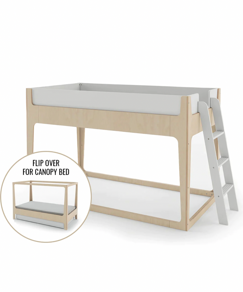 The Perch Nest stands about 4'2" tall, at least a foot shorter than a typical loft bed, making it a perfect first bunk that allows for goodnight kisses and an increased sense of security. Loft, bunk or canopy? The new convertible bed is full of possibilities!
