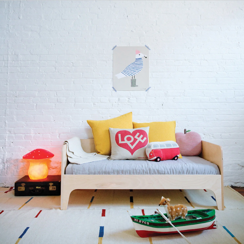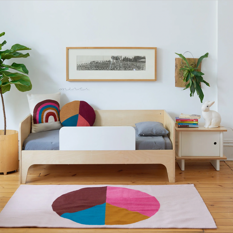 Celebrate the important milestone of moving to a "big kid" bed with the Perch Toddler Bed. As a scaled-down bed with a low mattress position, it will still feel cozy for your child, but it allows them to get in and out on their own, reinforcing a sense of independence. Then the toddler bed can be transitioned to a child-sized sofa by removing the security rail, once your child moves to a larger bed. This bed is GREENGUARD Gold certified and is sustainably produced in Europe under European environmental standards, using finishes that are non-toxic, water-based and free of VOC health hazards, making this piece an easy choice for your kiddo.