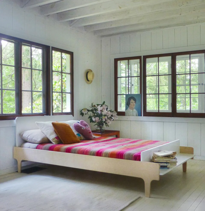 The River Bed's clean lines make it a perfect fit with any kids' style – and parents will love its space-saving design. A little bench at the foot of the bed provides a spot for kids to relax and read or doubles as storage for books and toys. A security rail (sold separately) can easily be added to either side of the bed so your little one sleeps safely at night. Additionally, the River Bed is produced in Europe under European environmental standards, using finishes that are non-toxic, water-based and free of VOC health hazards, making this piece an easy choice.