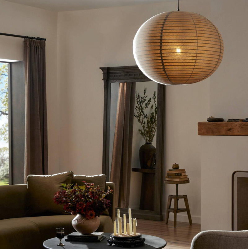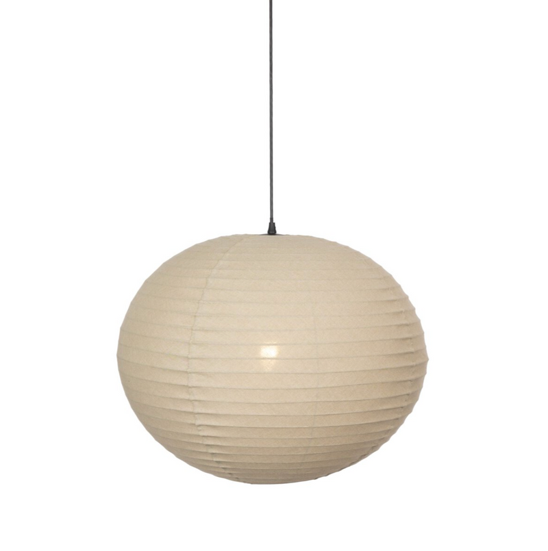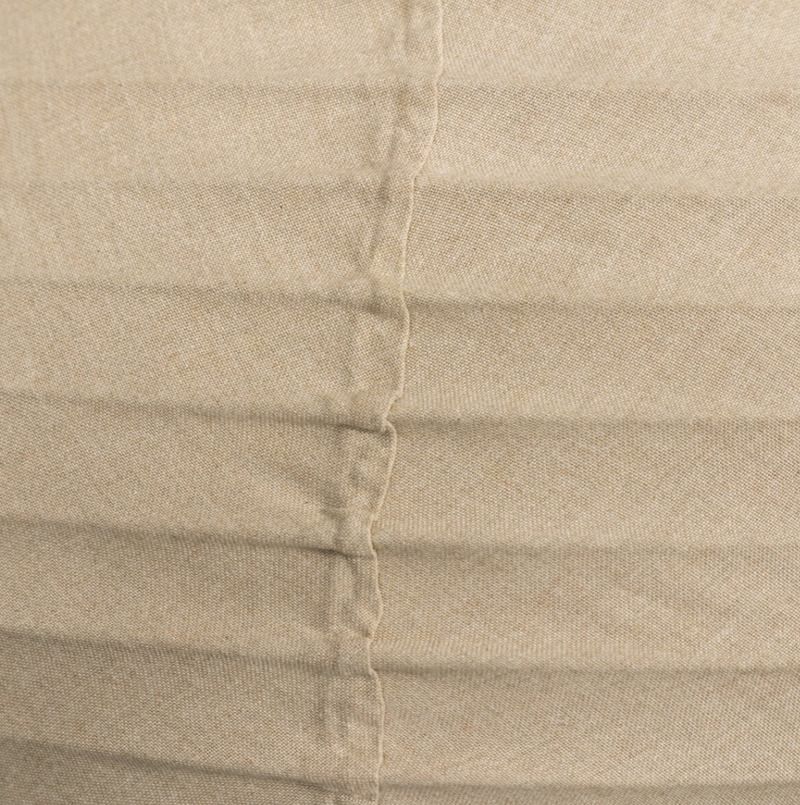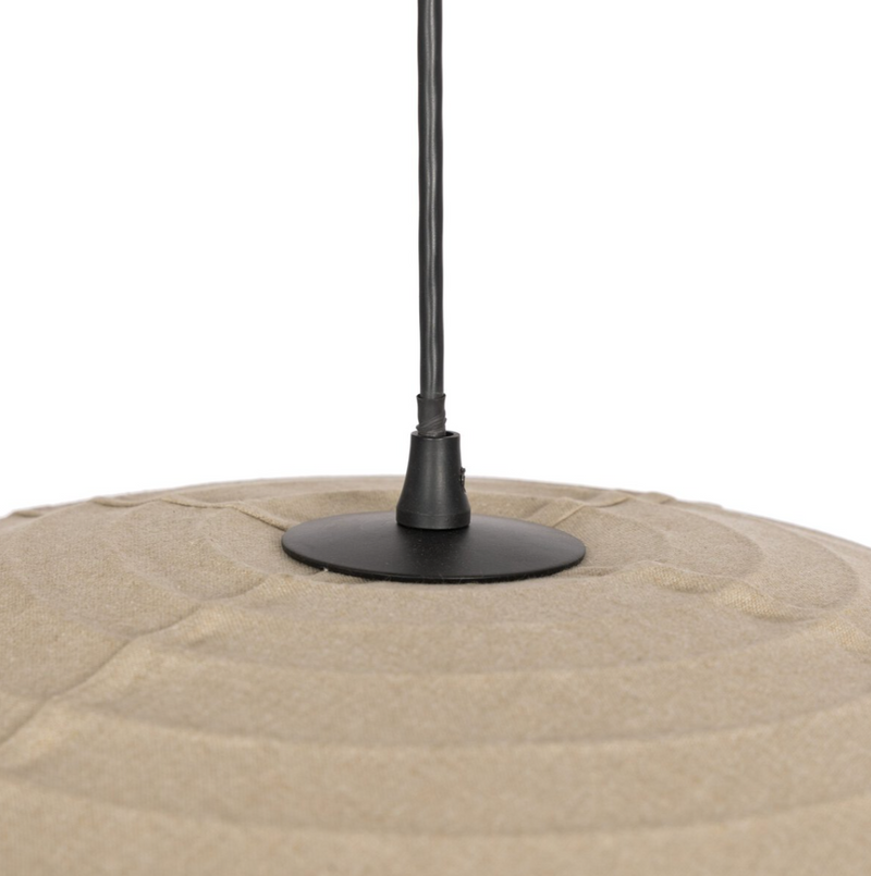 The traditional Japanese lantern, reimagined. Made from light tan flax/linen, this pendant softens spaces with a more diffused, ambient glow. Delicate pleats craft a sense of texture. Free of tension wire, black fabric cording allows for a clean, classic silhouette.