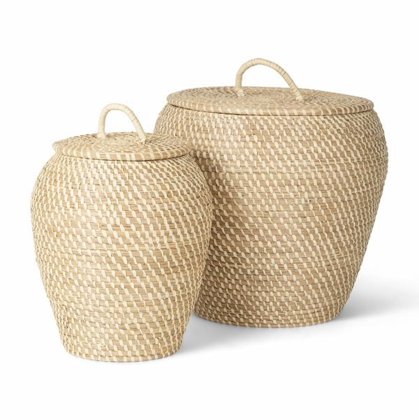 Hand-Woven Seagrass Baskets with Handles, Set of 2