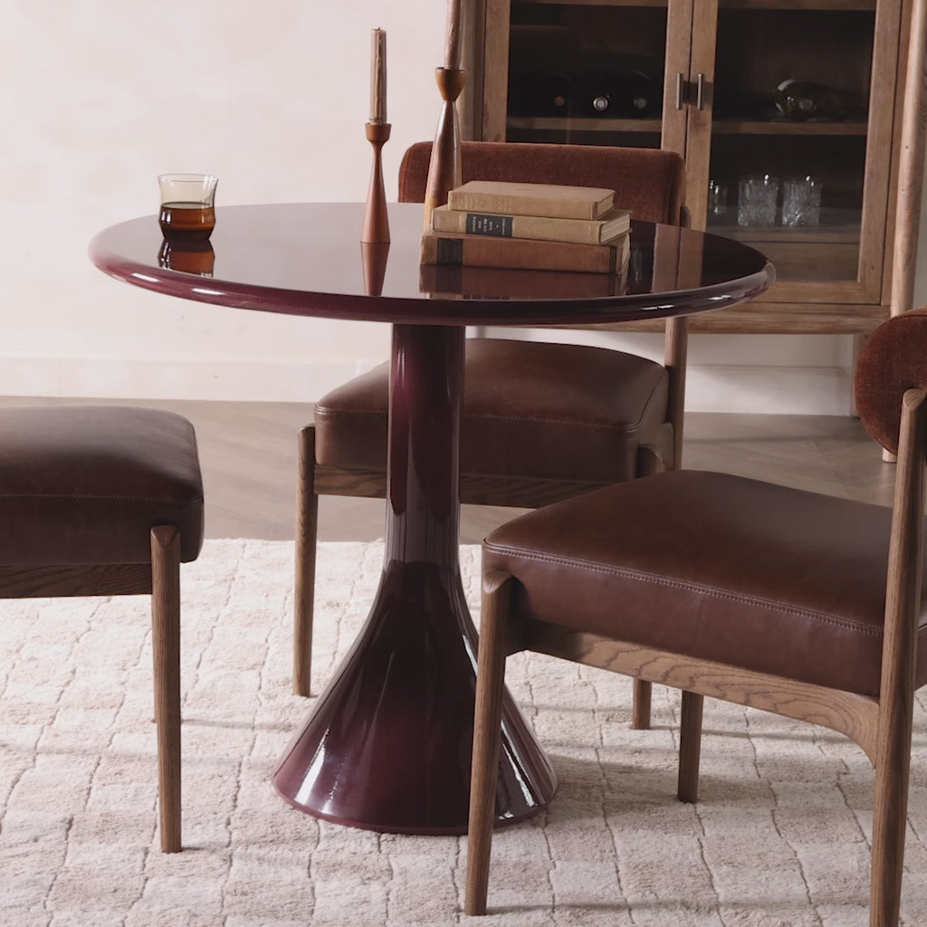 Retro vibes. Made from smooth, solid concrete in a high-gloss red finish, this bistro-size dining table supports a rounded top that's perfect for intimate dining.