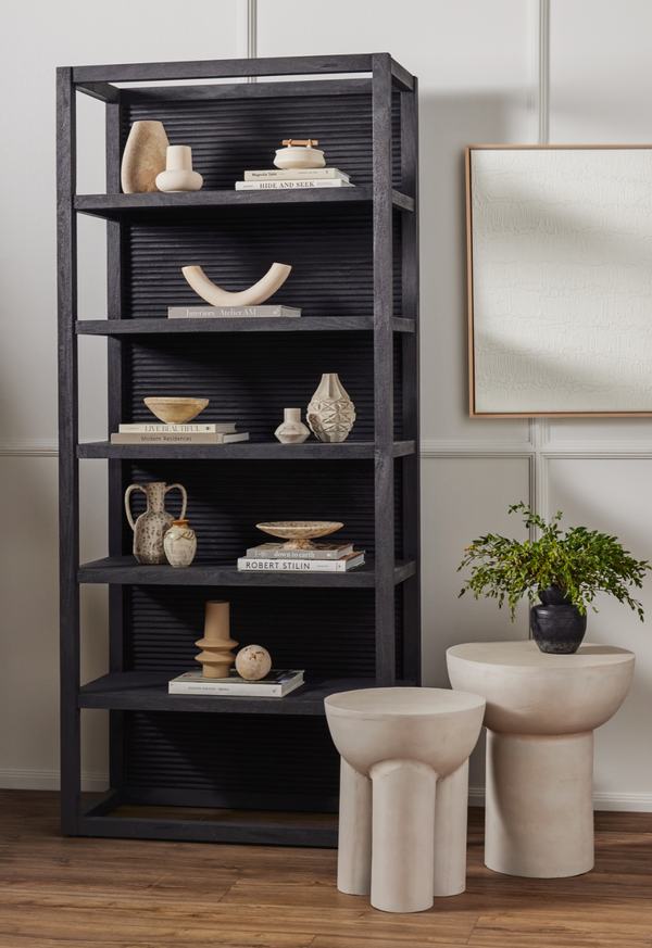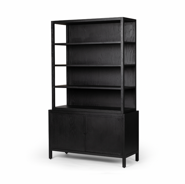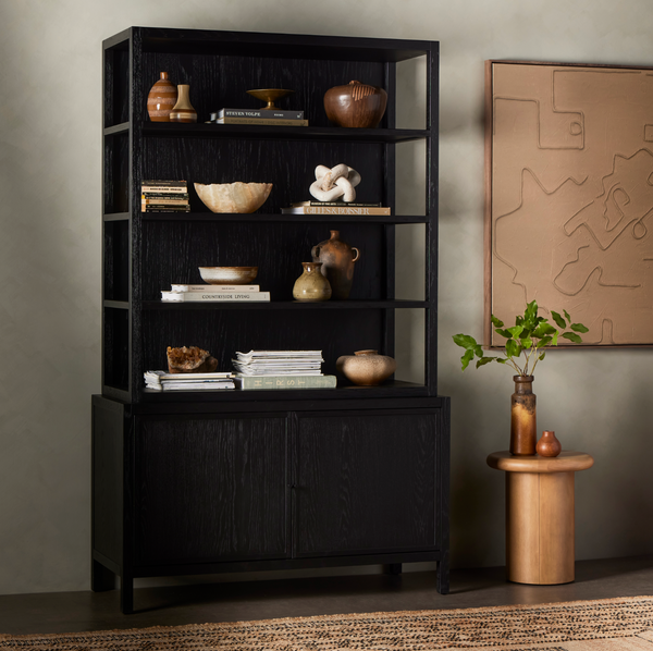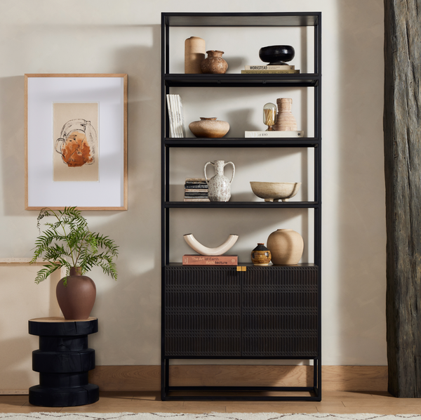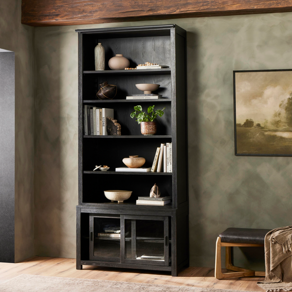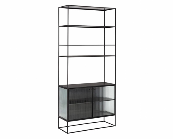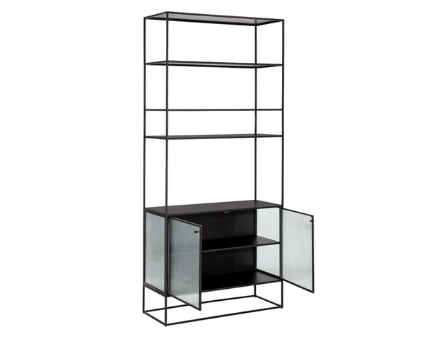 Millie Panel and Glass Door Cabinet - Drifted Matte Black