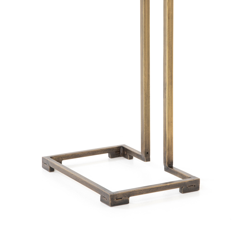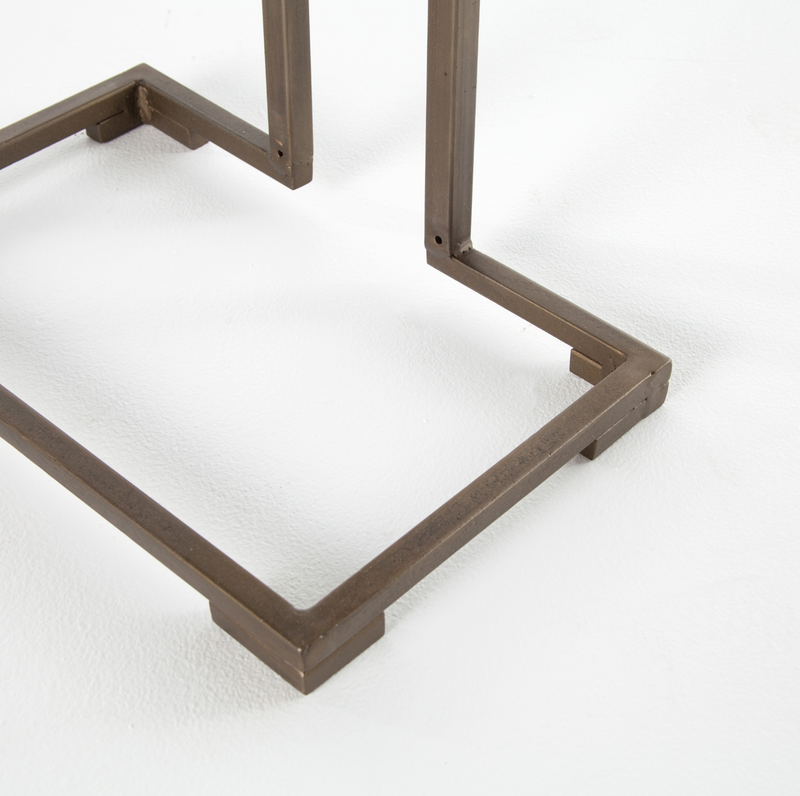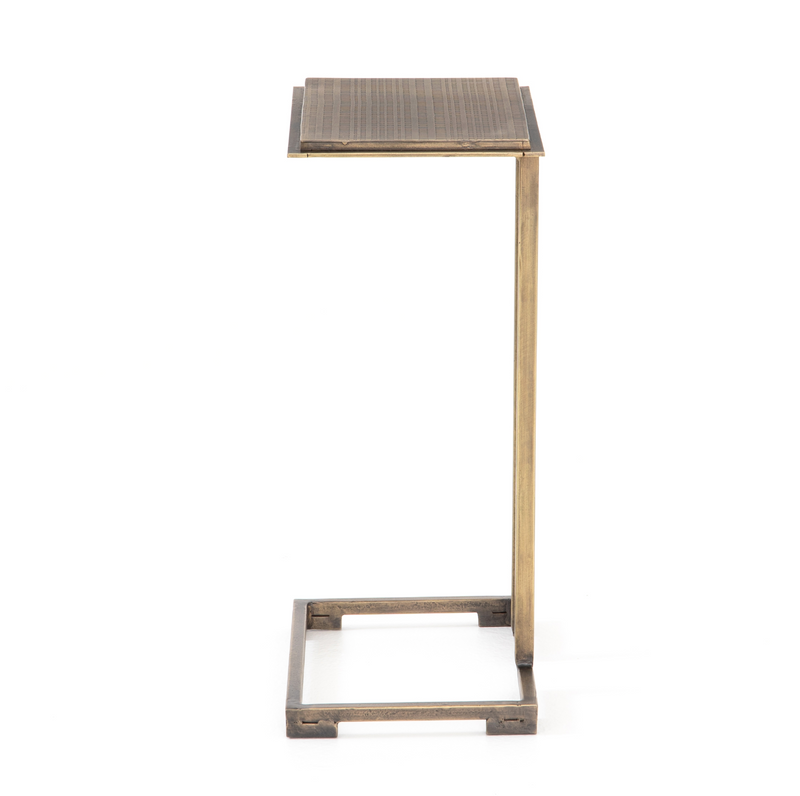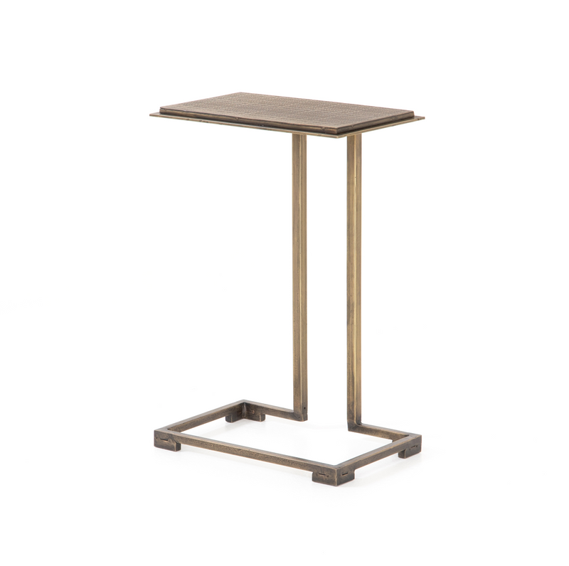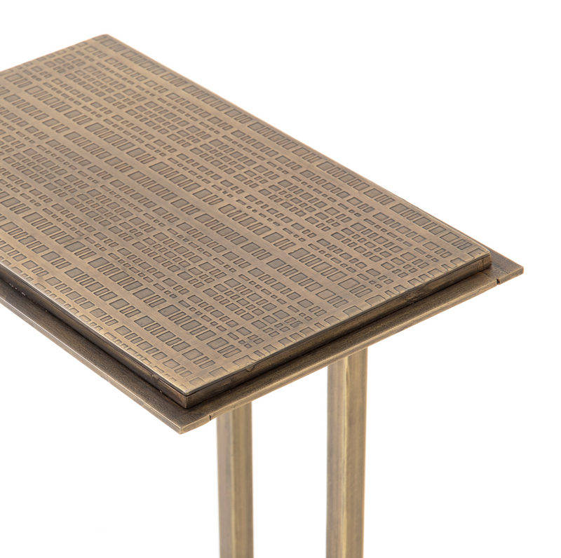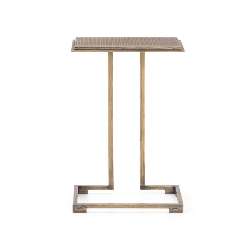 Slim and structured, acid etching refreshes the classic C-table with geometric allure. Antique brass-toned iron for warmth with a fresh metallic pop.