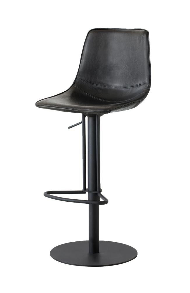 The Arthur Hydraulic Stool swivels on a sturdy steel post and is custom adjustable in height on a German-rated TVAC piston mechanism - perfect for both counters and bars. The upholstery is a breathable and easily cleaned leatherette. The seat construction is made from high-quality foam to ensure comfort and longevity. The steel construction is powder-coated black, a durable and practical finish.