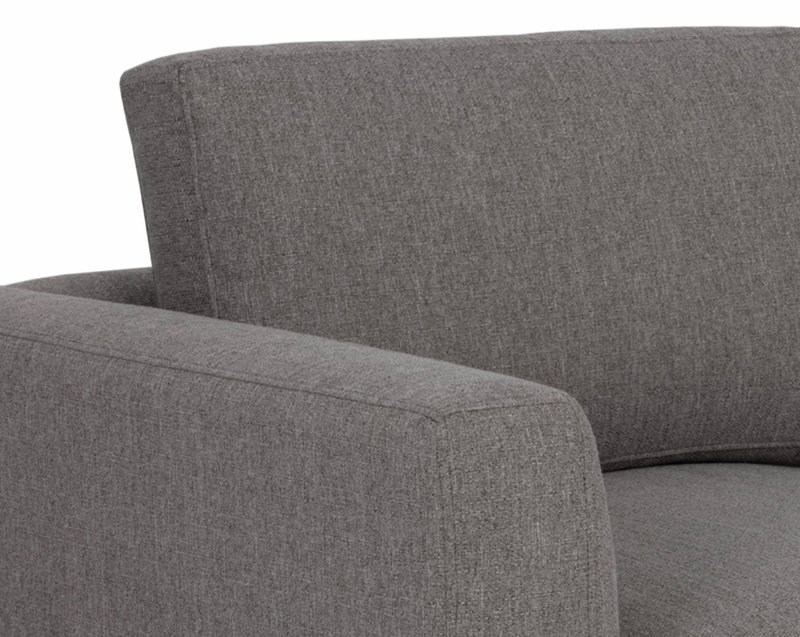 The Bryson features a deep seat with generously curved armrests for added comfort. Reversible, feather-wrapped cushions will take relaxation to a new level. Black metal legs complete the look. A coordinating armchair is also available. Liv performance fabric features 32% repreve polyester; it is moisture repellant, stain resistant and easy to clean. Repreve polyester is a high-quality yarn made from recycled post-consumer plastic bottles. The Bryson is made with locally sourced FSC-certified, kiln-dried alder wood. As this piece features feather-filled cushions, occasional rotation and fluffing is required to maintain its lasting comfort and beauty.