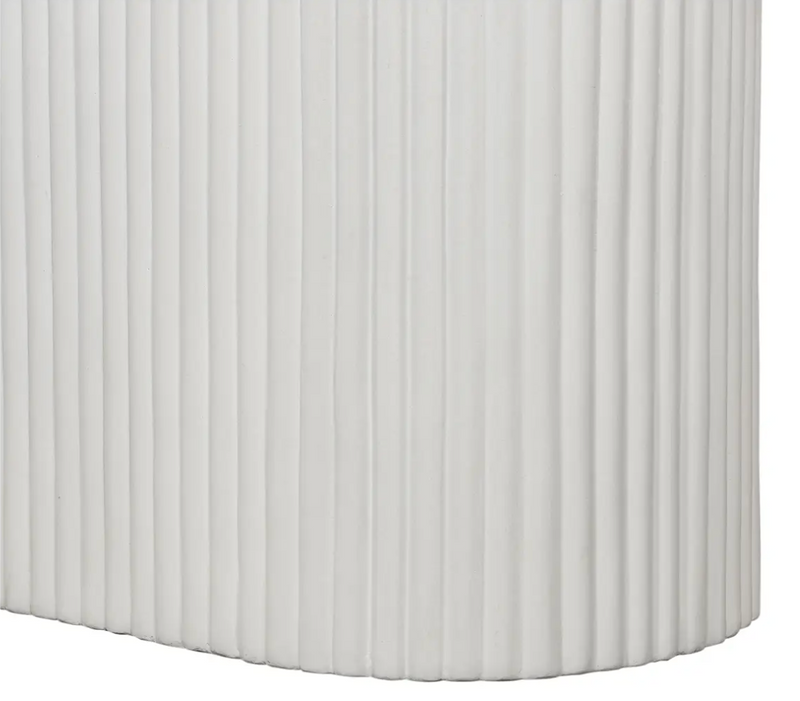 The foundation of beautiful happenings in your backyard, whether you're casually enjoying the late afternoon sun, or dining late into the evenings. Perfect for an open-plan garden or patio setting, with spacious seating for 6, this outdoor dining table's rounded geometric shape contrasts so well within an organic arrangement. Constructed in a unique concrete terrazzo composite, its foam core tabletop focuses on the natural beauty of minerals and adds visual texture with its ribbed, hollow base. A contemporary, ergonomic shape that will fit invitingly into any outdoor scene.