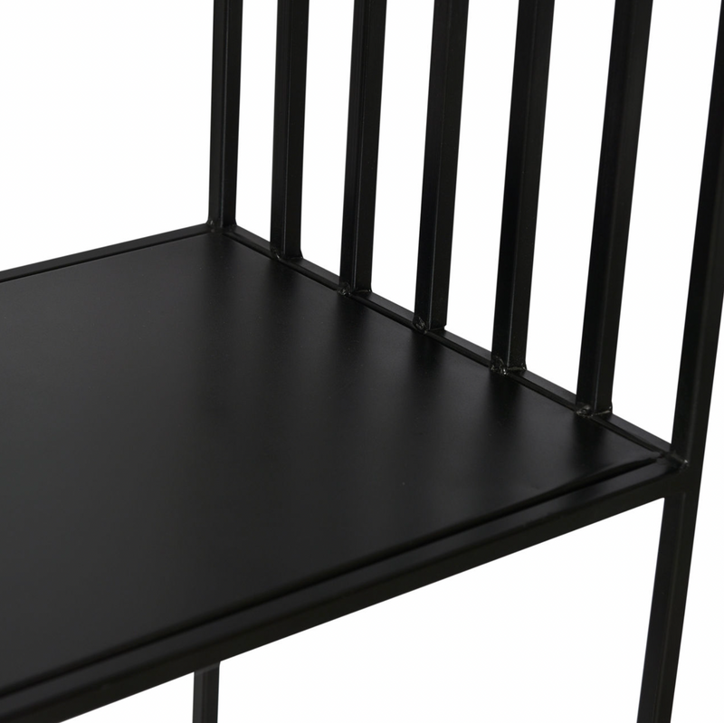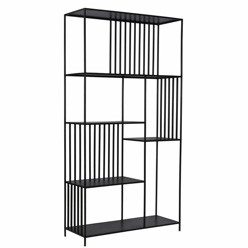 Vertical lines crafted from solid iron form a clean contemporary look and make it easy for this bookshelf to turn your collection of books, decorative items and more into an artful display.