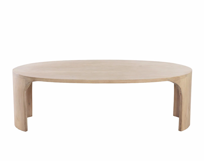 Boasting a beautiful, oval design, this mid-century modern coffee table is a stunning addition to any space. Crafted from solid light acacia wood with gently curved legs. As wood is an organic, porous material, these pieces will contain natural variation of texture and may also exhibit fine indentations and cracks. Wood pieces will also display a disparity of colour and grain, and visible knots and burls that add to the character of each piece.