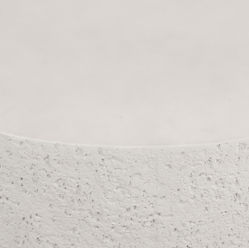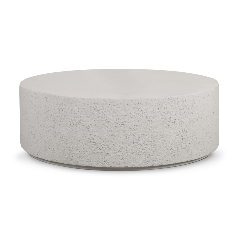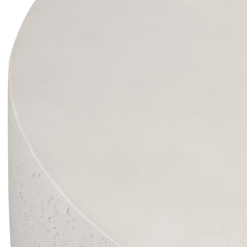 Bring a touch of industrialism to outdoor styling with this drum-style outdoor coffee table. Solid cream-coloured concrete atop a plinth base features raw edging for texture, with a smooth, clean surface. Cover or store indoors during inclement weather and when not in use.