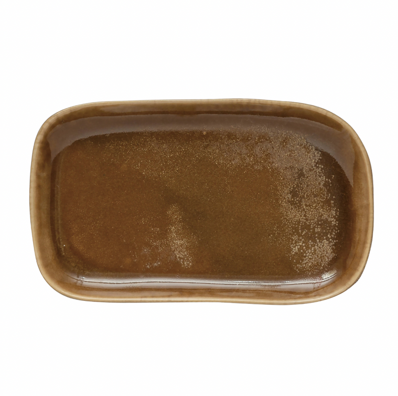 Discover elegance in simplicity with our Brown Stoneware Platter. Its organic rectangular shape and mesmerizing reactive glaze add a touch of artisanal charm to your table setting.