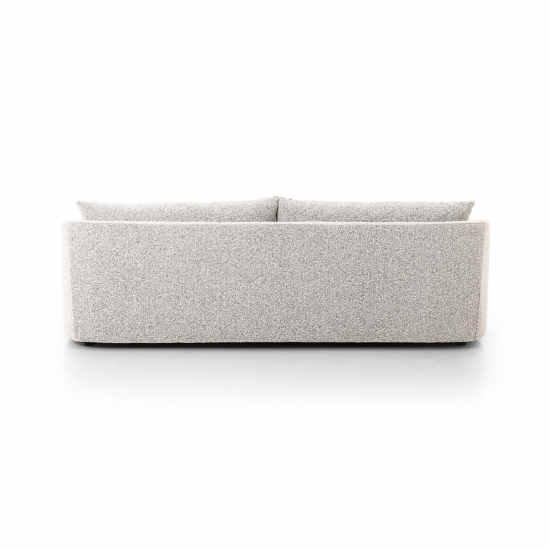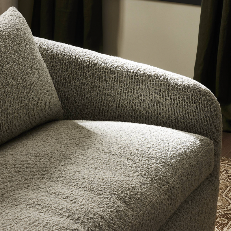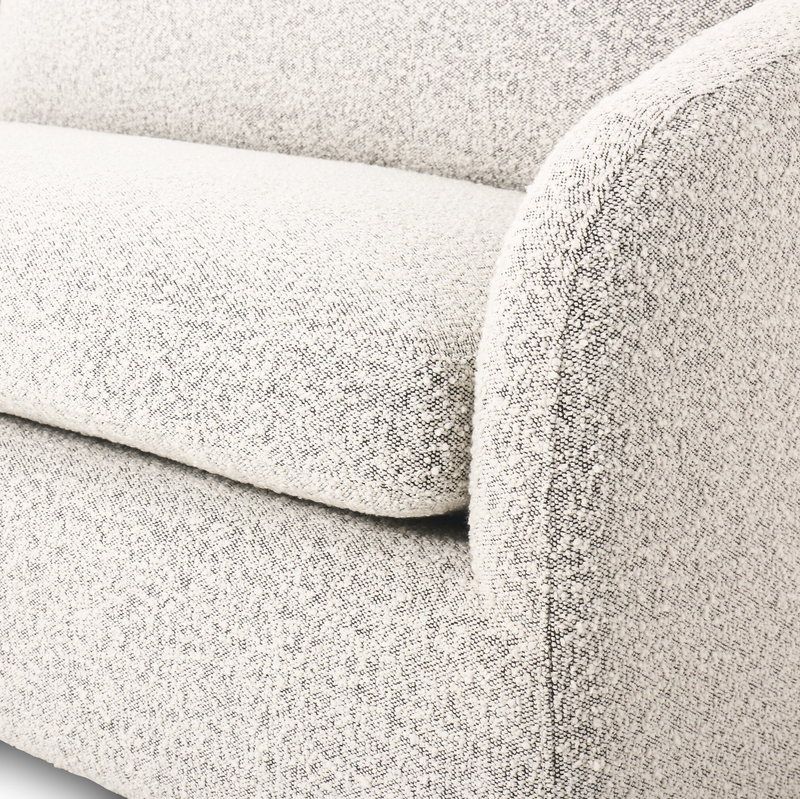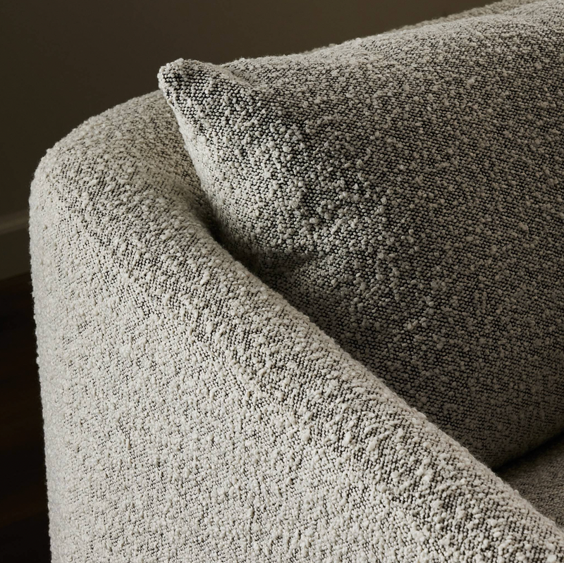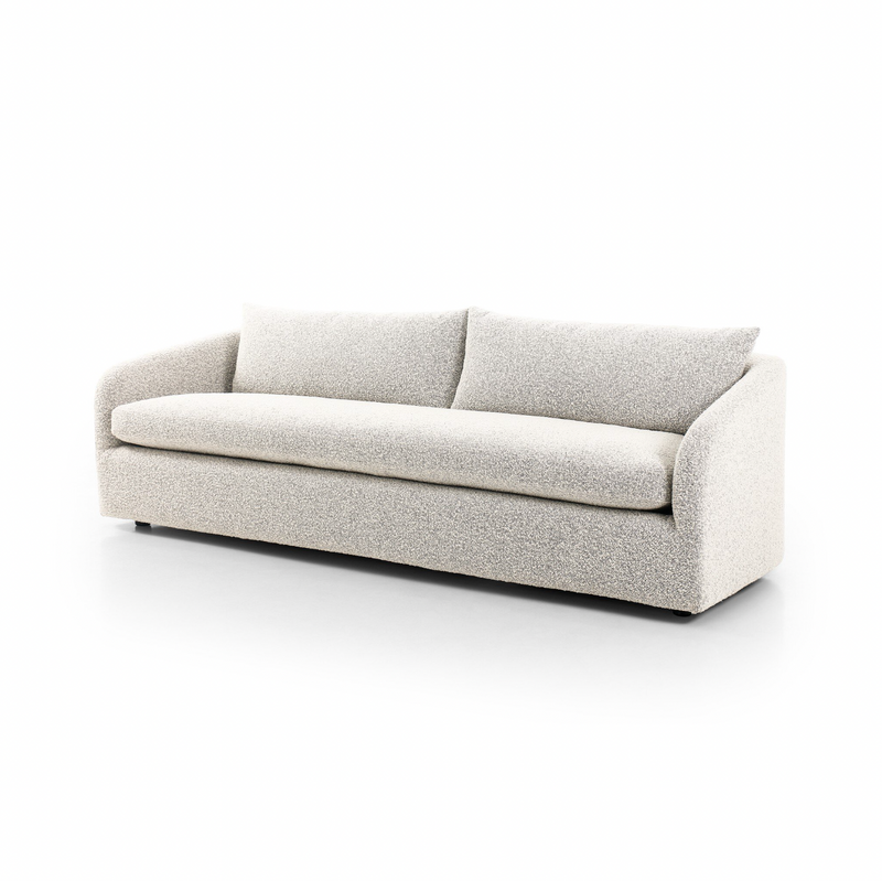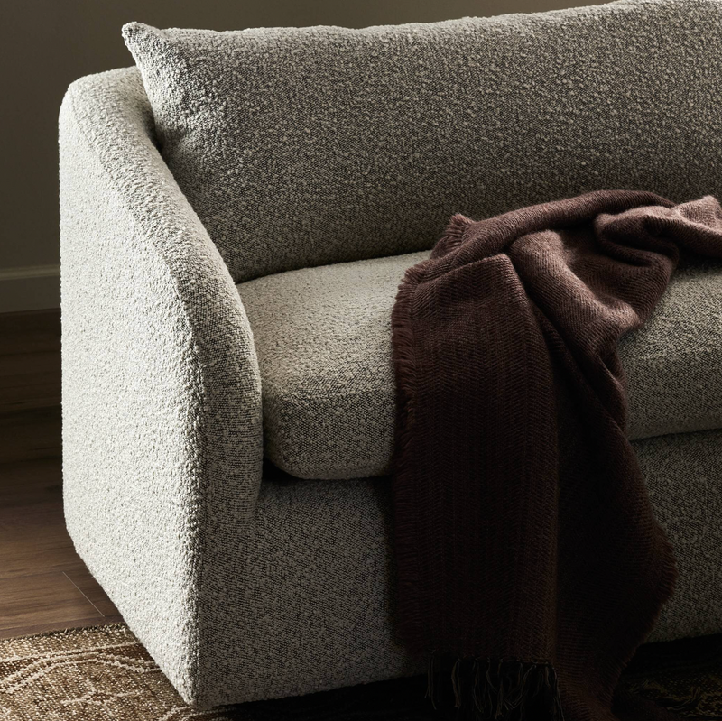 Textural boucle and angled arms give this sofa a stylish upgrade, while the two-over-one cushion configuration lend a laid-back look. Performance fabric is specially created to withstand spills, stains, high traffic and wear, ensuring long-term comfort and unmatched durability.