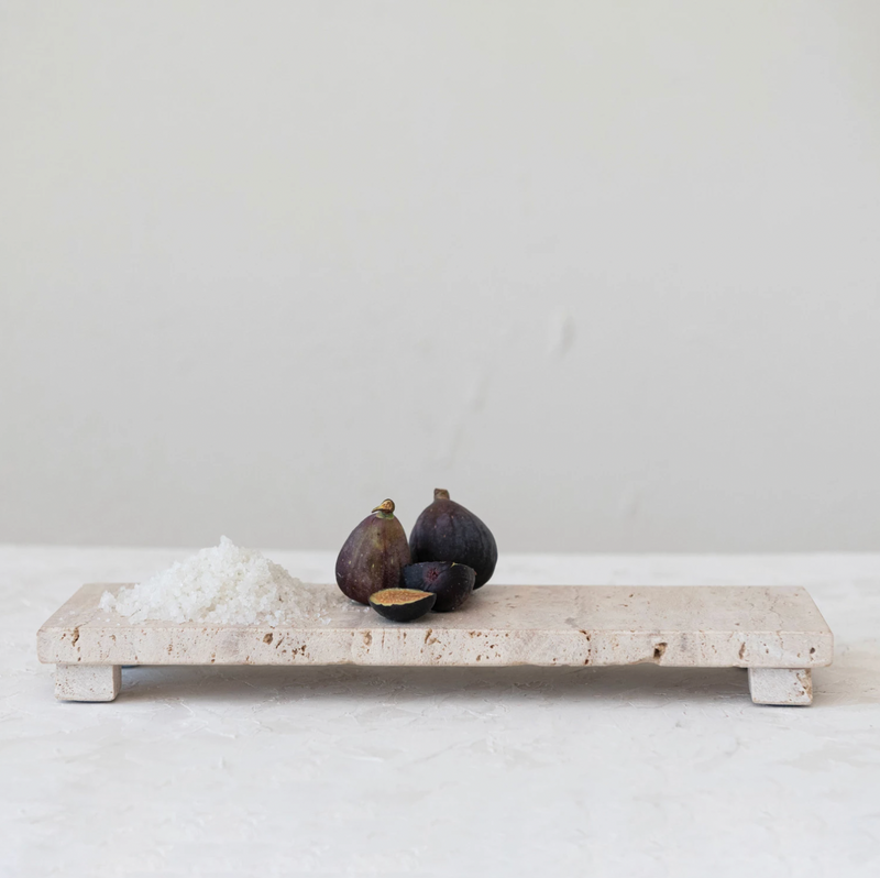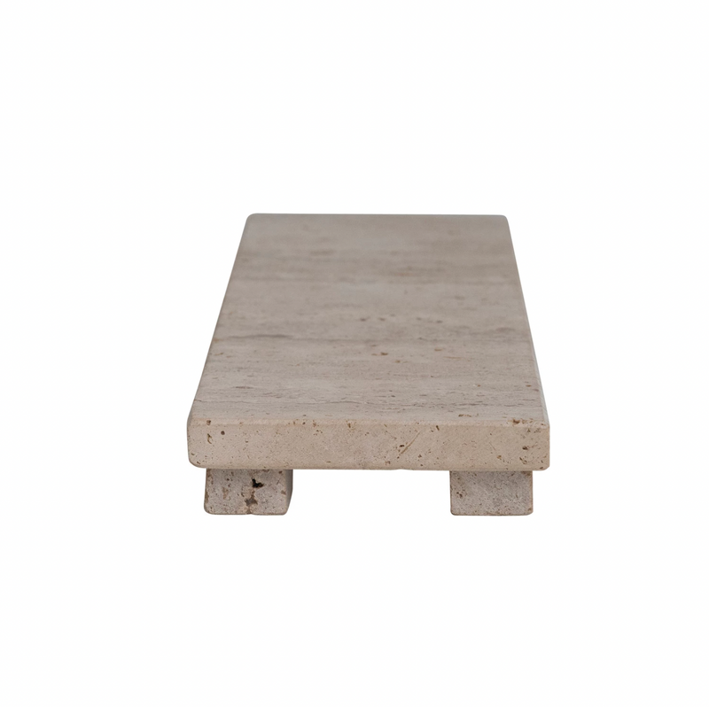 Elevate your treasures with this elegant travertine tray. Perfect on shelves or tables as a decorative piece.