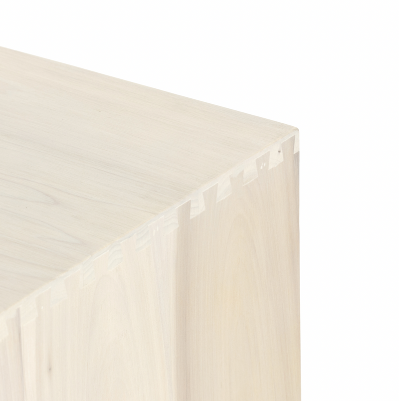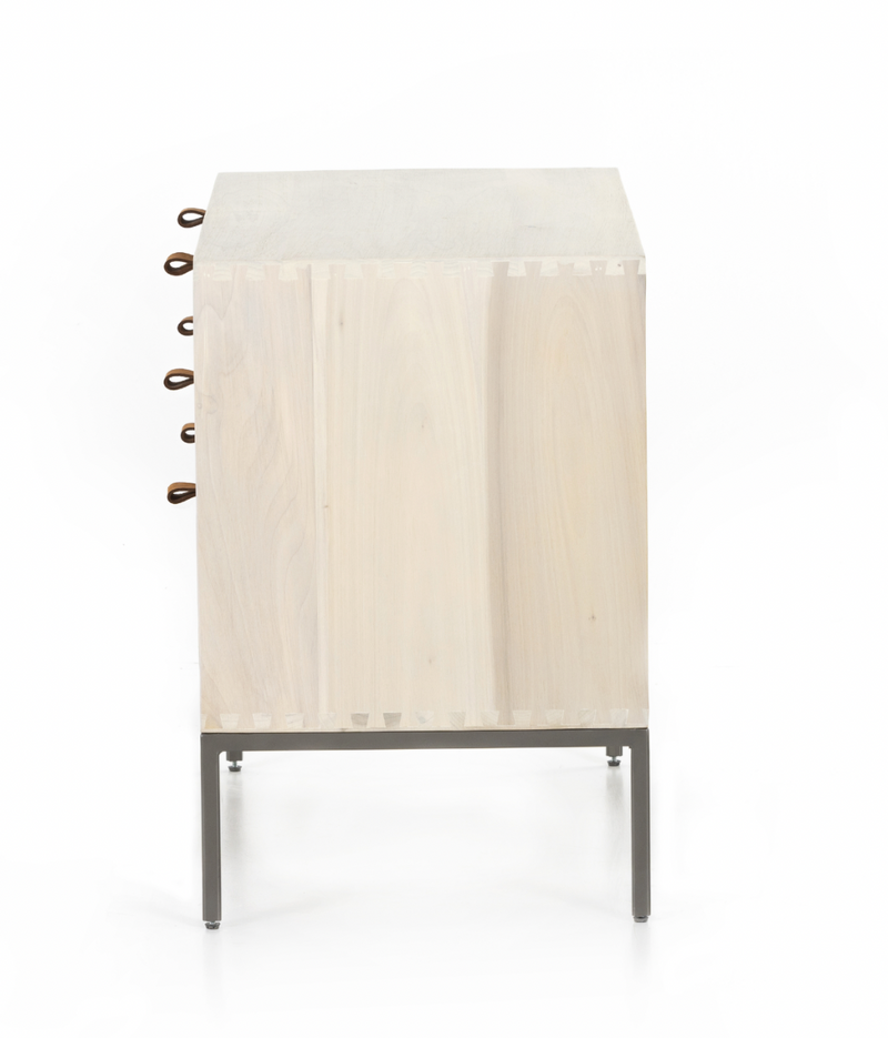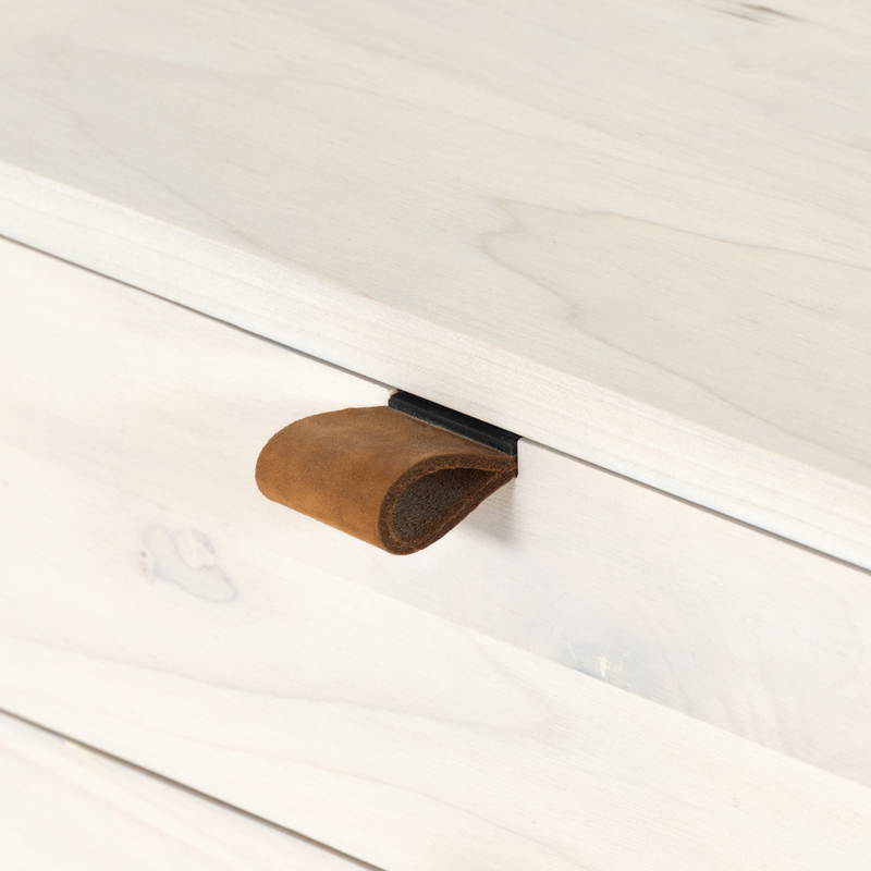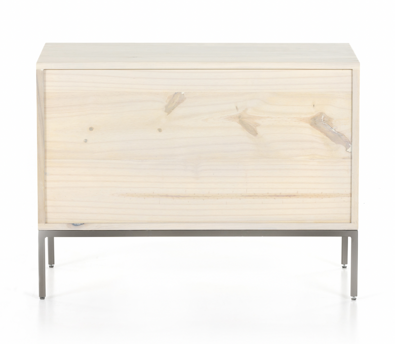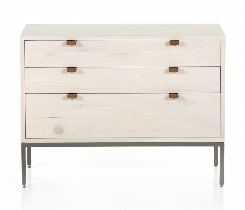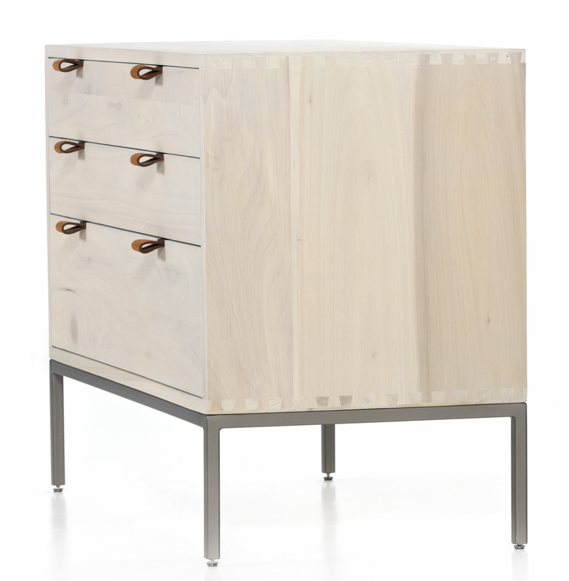 Simple style, inspired by midcentury décor. Made from light-finished poplar, a roomy three-drawer nightstand brings extra storage space to the bedside. Top-grain leather pulls add a textural finishing touch.